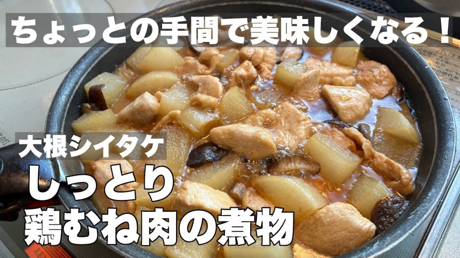 【美味い鶏むね肉】シイタケと大根の炒め煮物