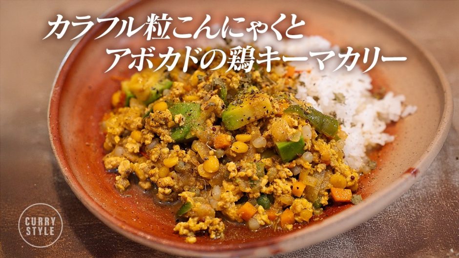 【スパイスカレーレシピ】カラフル粒こんにゃくとアボカドの鶏キーマカリー