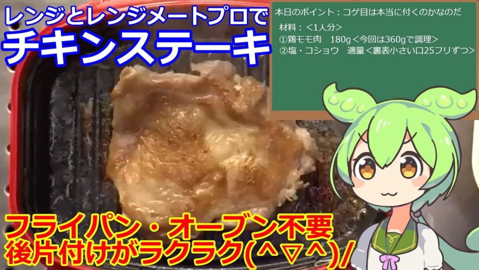 今回は「レンジとレンジメート プロ グランデでチキンステーキ」なのだ。レンジでコゲ目が付くらしいので試してみたのだ。