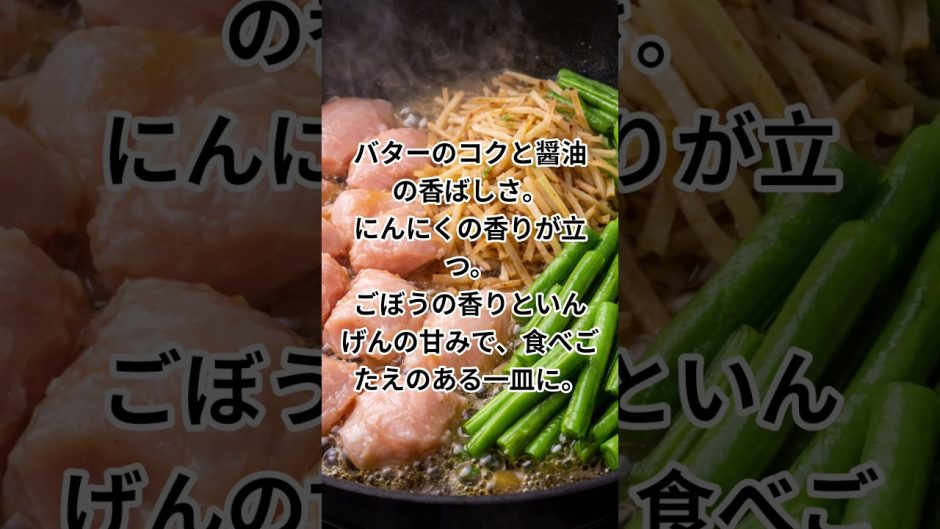 ②フライパンに鶏むね肉→ごぼう→いんげんの順で入れ、しょうゆ→みりん→酒→にんにく→バターをすべて入れる。