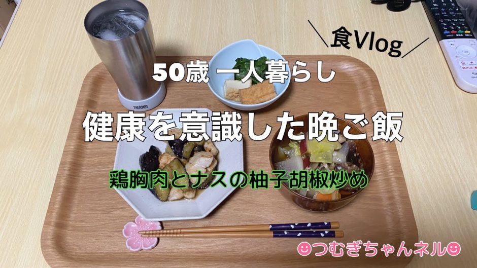 五十路女の健康を意識した晩ご飯【鶏むね肉とナスの柚子胡椒炒め】
