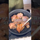 ③フライパンが温まったら鶏肉を入れて弱火と中火の間で火が通るまで5分ほど揚げ焼きにしたら完成!