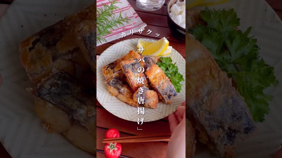 ①骨取り塩サバは表面をキッチンペーパーで拭き取り、食べやすい大きさに切る。